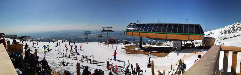 Na miejscu zjawiliśmy się chwilę po godzinie 8 rano. Mimo tej względnie wczesnej godziny górny i środkowy parking pękał w szwach. Jakieś pół godziny później ruszyły wszystkie wyciągi w ośrodku i ku naszemu zdziwieniu czas oczekiwania na krzesełko na początku wynosił około minuty. Wszystko to za sprawą bardzo szybkiego i wygodnego 4-osobowego wyciągu Solisko Expres, które dysponuje przepustowością rzędu 1600 osób na godzinę. Pierwsze zjazdy odbywały się przy temperaturze około 5 stopni i pełnym słońcu – mimo takiej pogody warunki były wyśmienite. Przez pierwsze dwie godziny wszystkie stoki Strbskiego Plesa były pozbawione garbów i muld – wszystko to za sprawą dobrego i profesjonalnego przygotowania stoków i optymalnego wykorzystania sporych opadów śniegu.